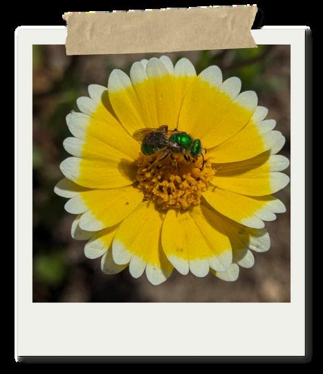 These tiny, metallic green bees are native pollinators, especially drawn to Globe Gilia, Blue-Eyed Grass, Tidy Tips, California Bush Sunflower, and Golden Yarrow Solitary and sting-shy, they play a major role in supporting native wildflowers.
