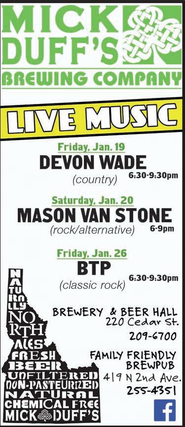 The Ronaldos, Pend d’Oreille Winery, Jan. 26 Mason Van Stone, MickDuff’s Beer Hall, Jan. 20