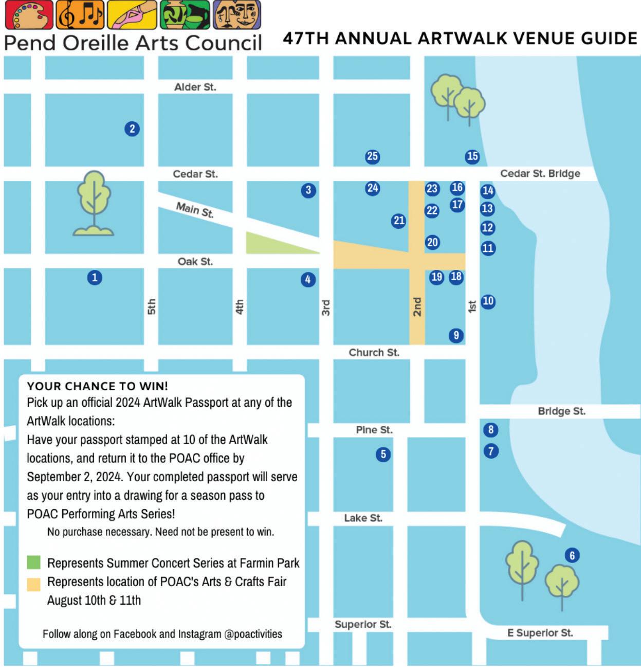 Welcome to the 47th annual ArtWalk, presented by the Pend Oreille Arts Council. This summer event has been a part of Sandpoint life for generations and it remains one of the quintessential parts of local culture. Check out Page 14 for more information and a map of the participating downtown locations.