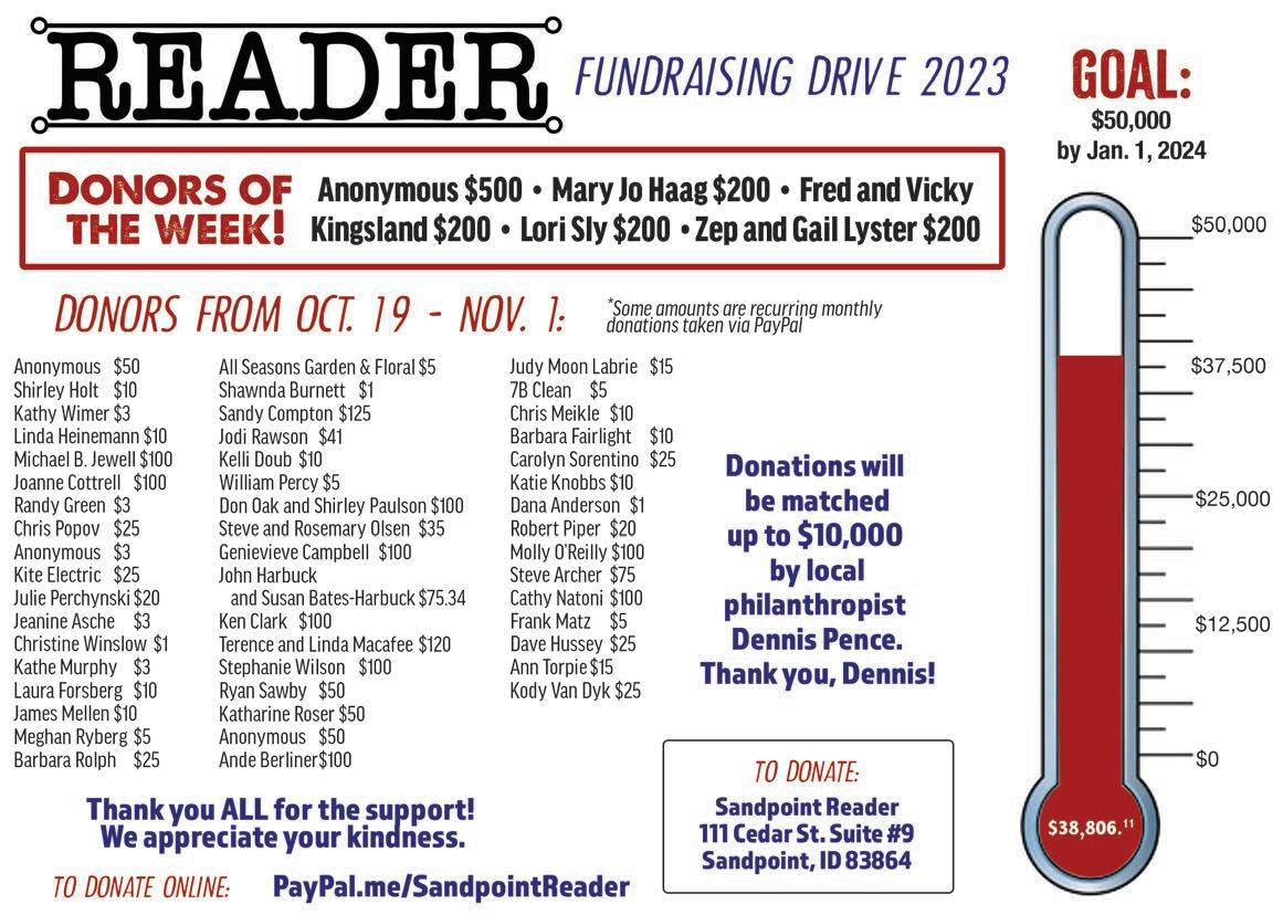 Submit stories to: stories@sandpointreader.com