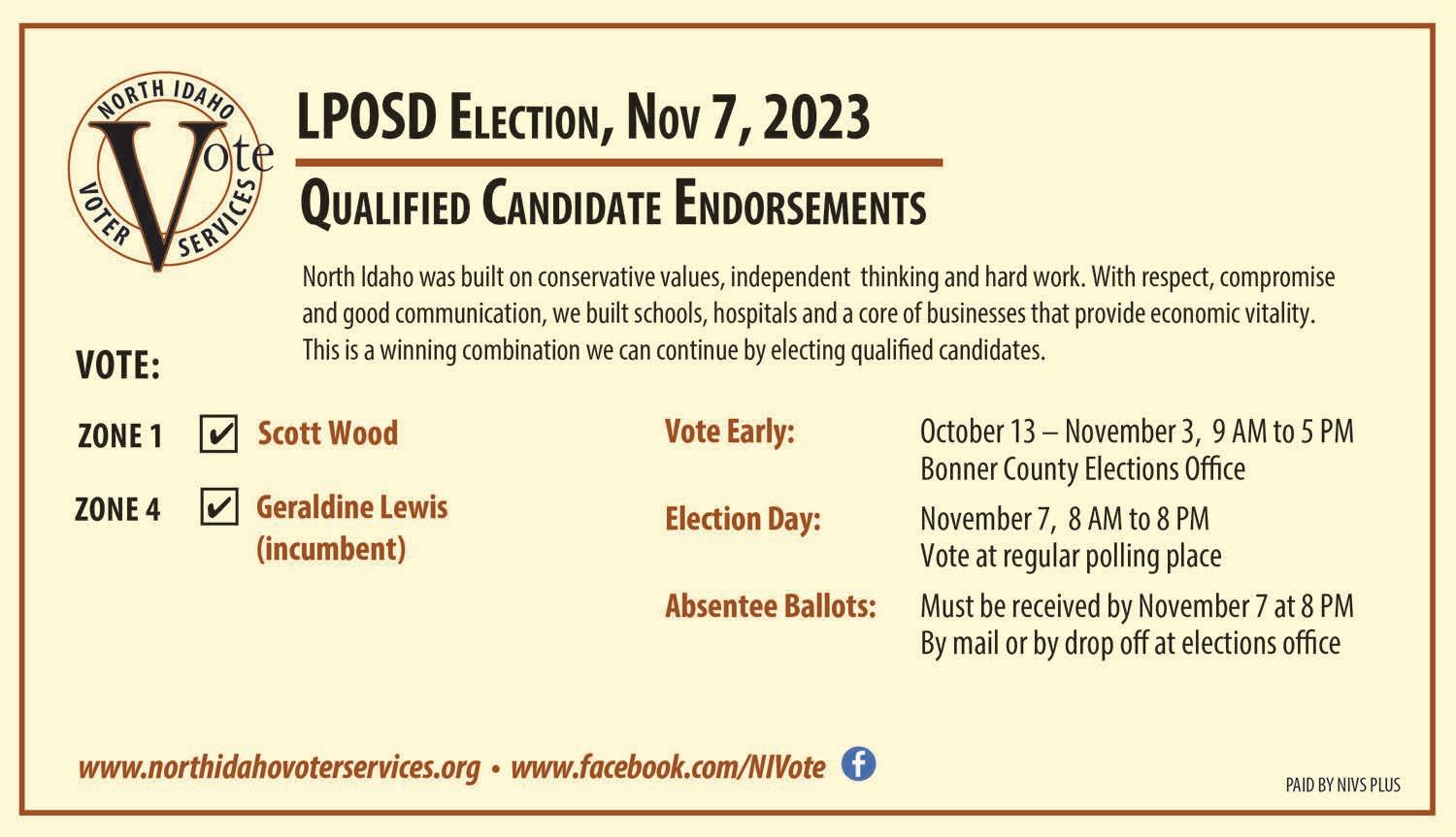 "I've knownJeremy Grimmfor over 20years. While on City CouncilI worked with him directly asa department head. He hastheskillsand background to leadSandpointforward. I willbe votingforhim November 7h. "