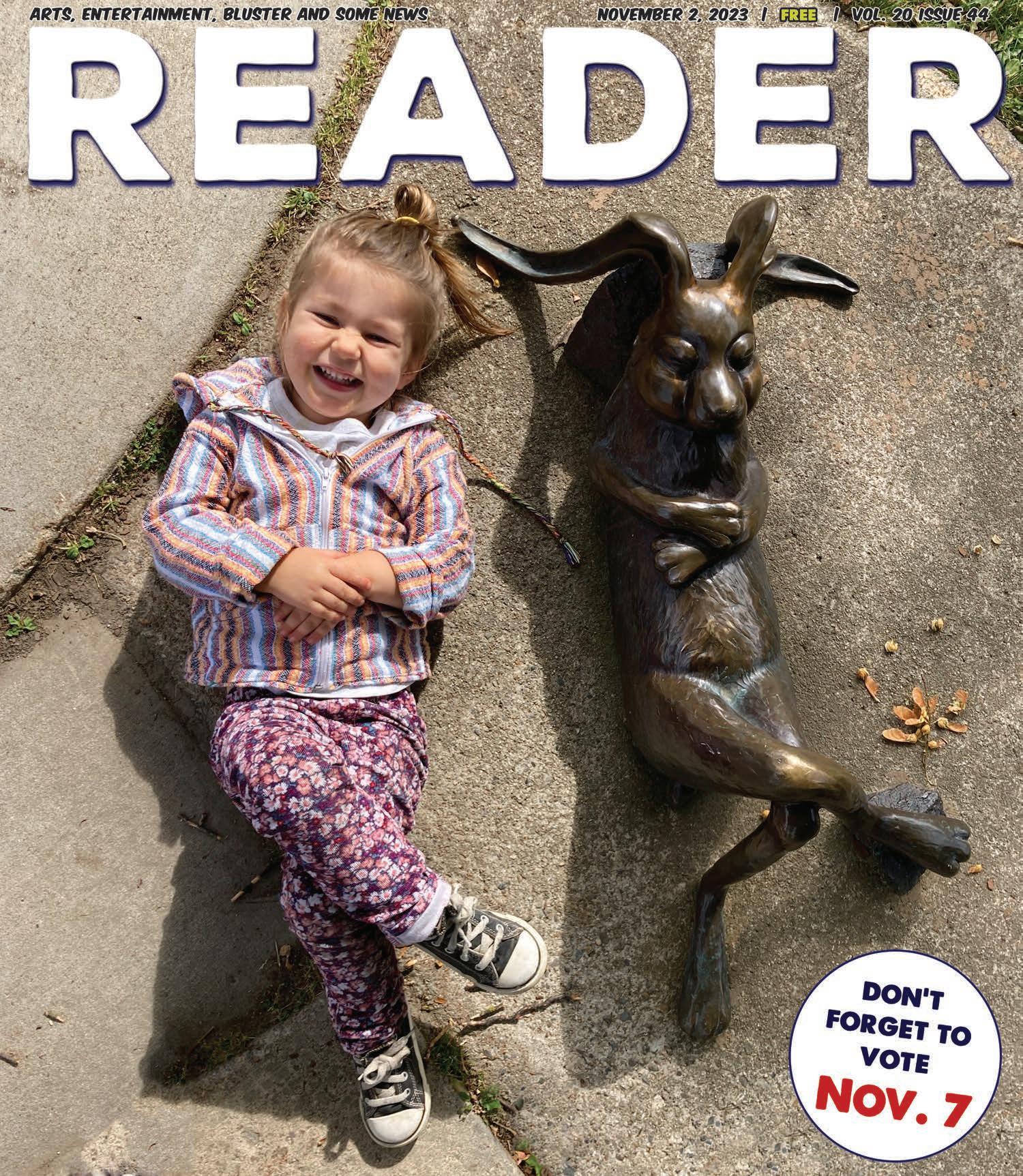 This week’s adorable cover photo was taken by Paige Belfry of her daughter Cedar enjoying a light moment at the Farmers’ Market.