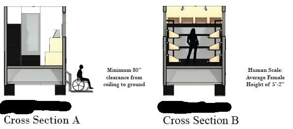 An ADA ramp with appropriate clearances is integrated into the design to be convenient to all users