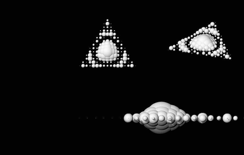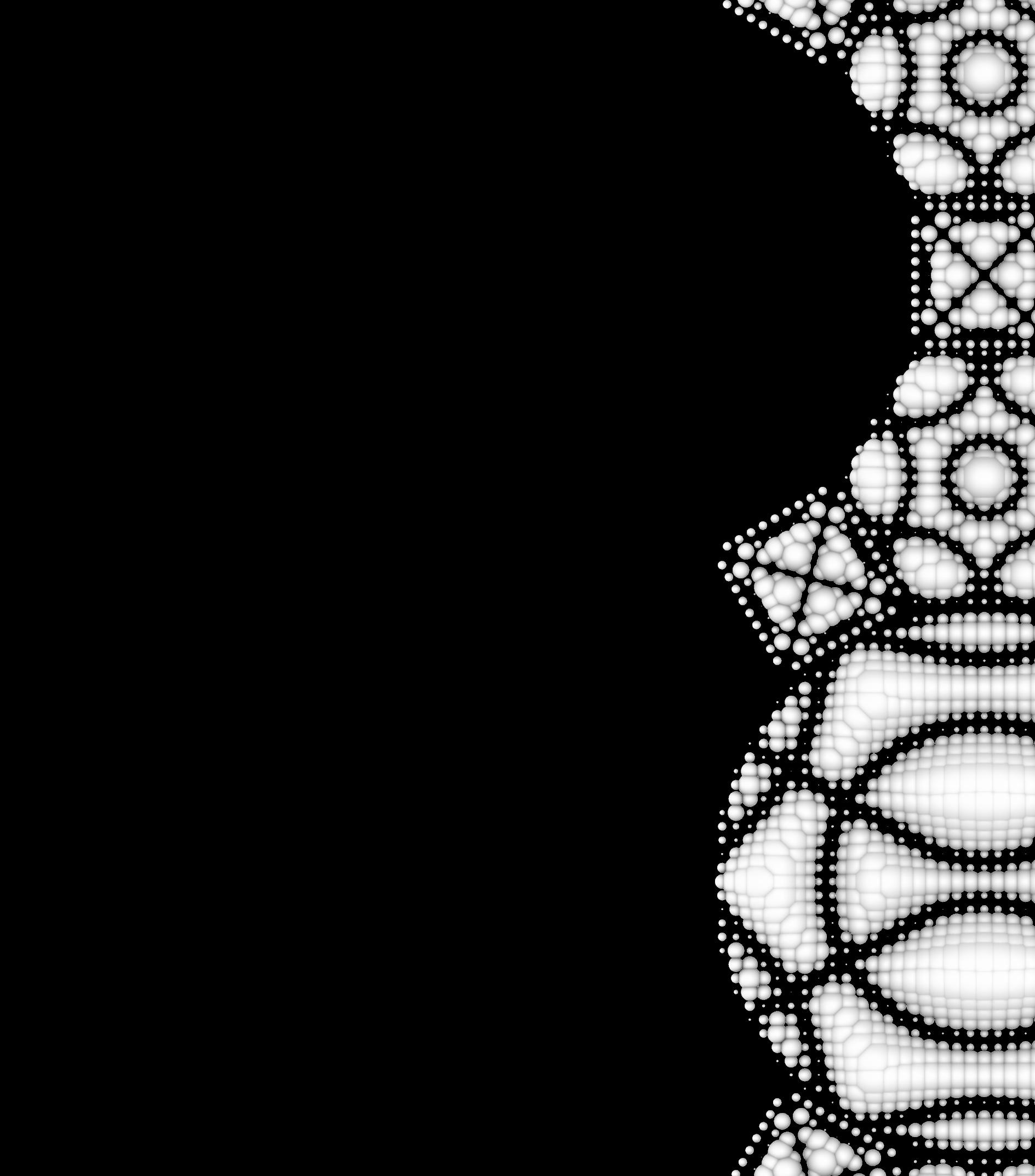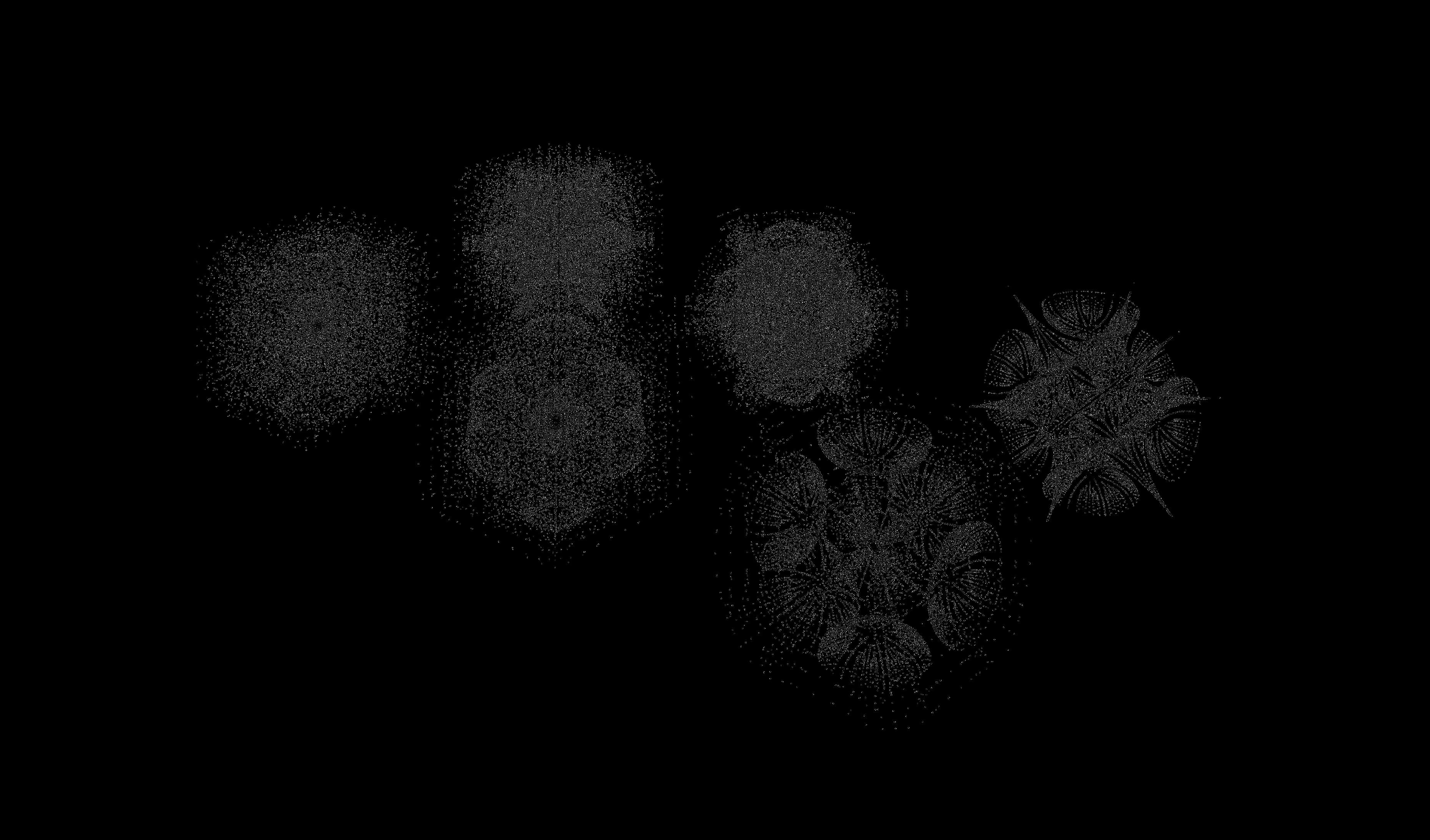 on the shape of its medium. Since the medium of sound waves in a space is the air, the cymatic pattern is three-dimensional. Through the symmetricity of the pattern, I interpret the cymatic patterns from two-dimensional into three dimensional. The pattern is then visualized by point clouds.