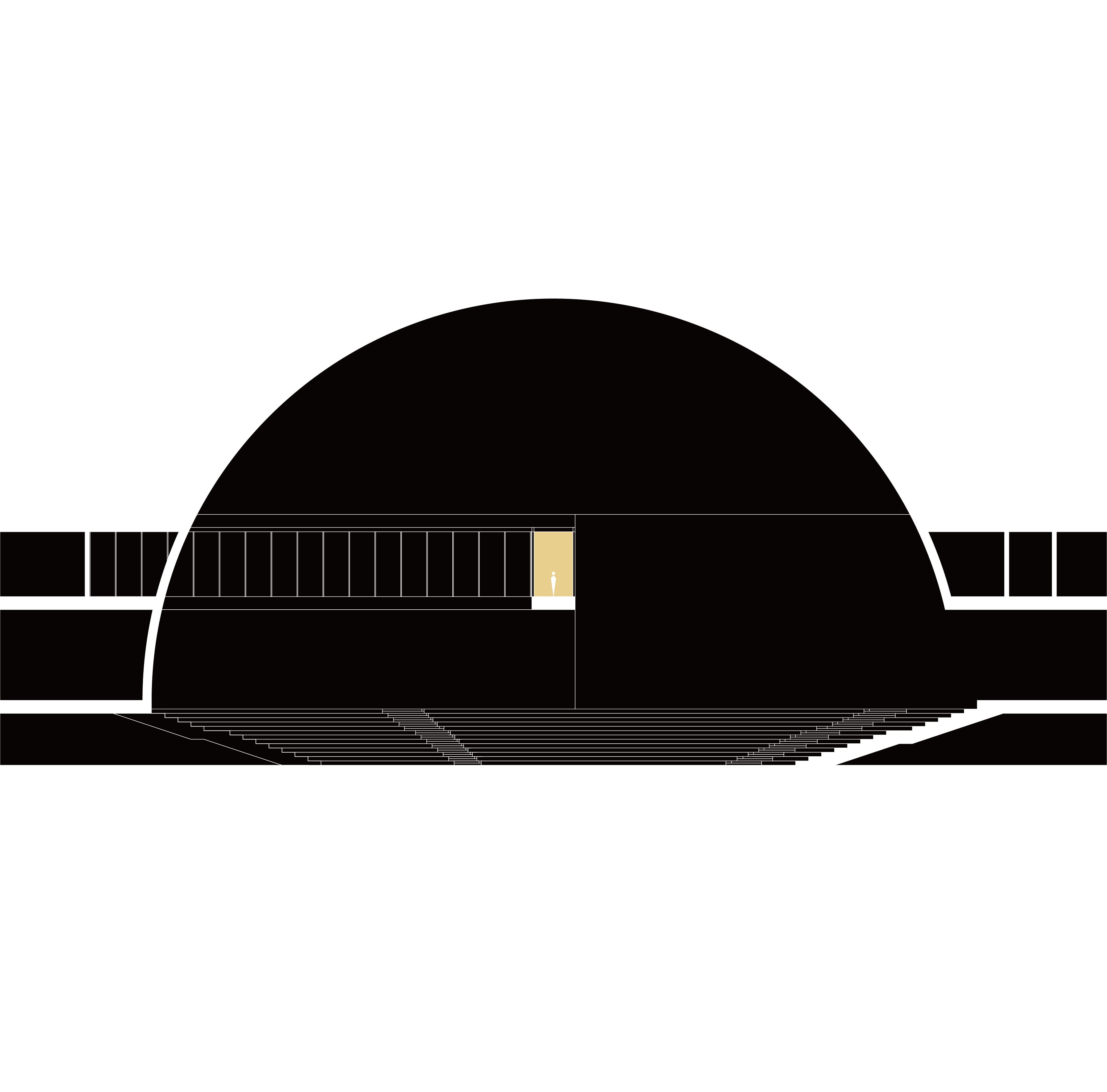 The ideas is that every performing space, which we called it perfoming sphere, is stitched together by a continuous pathway (gold). It allows visitors walk from