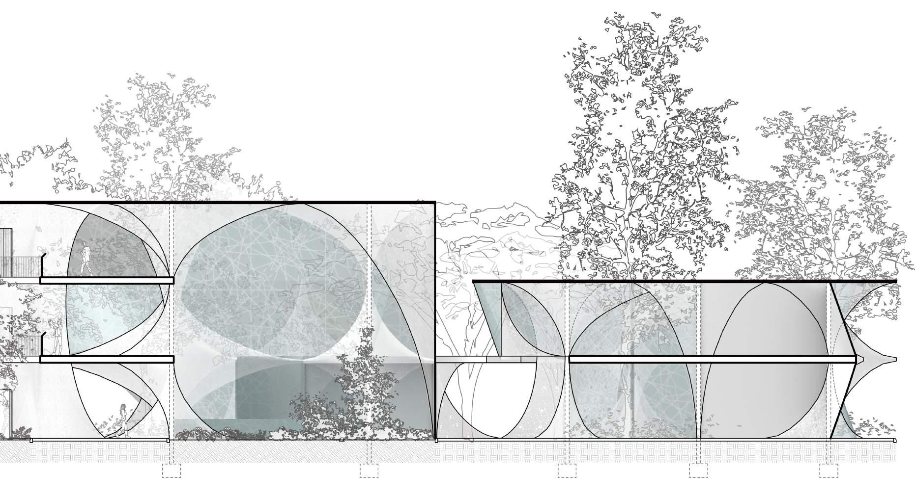 The core concept of this project is that the building and the plants are fitting to each other. Aside from the space that required artificial floors, the building spares most of the earth to the plants. On the other hand, the plants become the secondary envelope system that shades the building from excessive sunlight. Based on their geometrical properties, each plant could serve as a part of architecture. For instance, the wide and shallow canopy of Acacia could be the roof of the library, whereas the short, dense shrubs could be the wall that prevents wind and filters polluted air from the outside.