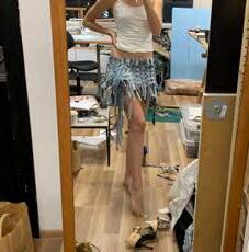 I developed my processes further into sewing the fabric of the jeans into strips and using them alongside the seams. I kept all the pockets, waistbands, and zippers, knowing that I would figure out a use for them. Eventually. The famous TikTok mockery videos about hoarding and the phrase ‘’it has potential’’ hit too close to home, but I had the storage and the ambition to not become my soviet parents keeping everything hidden away for eternity.
