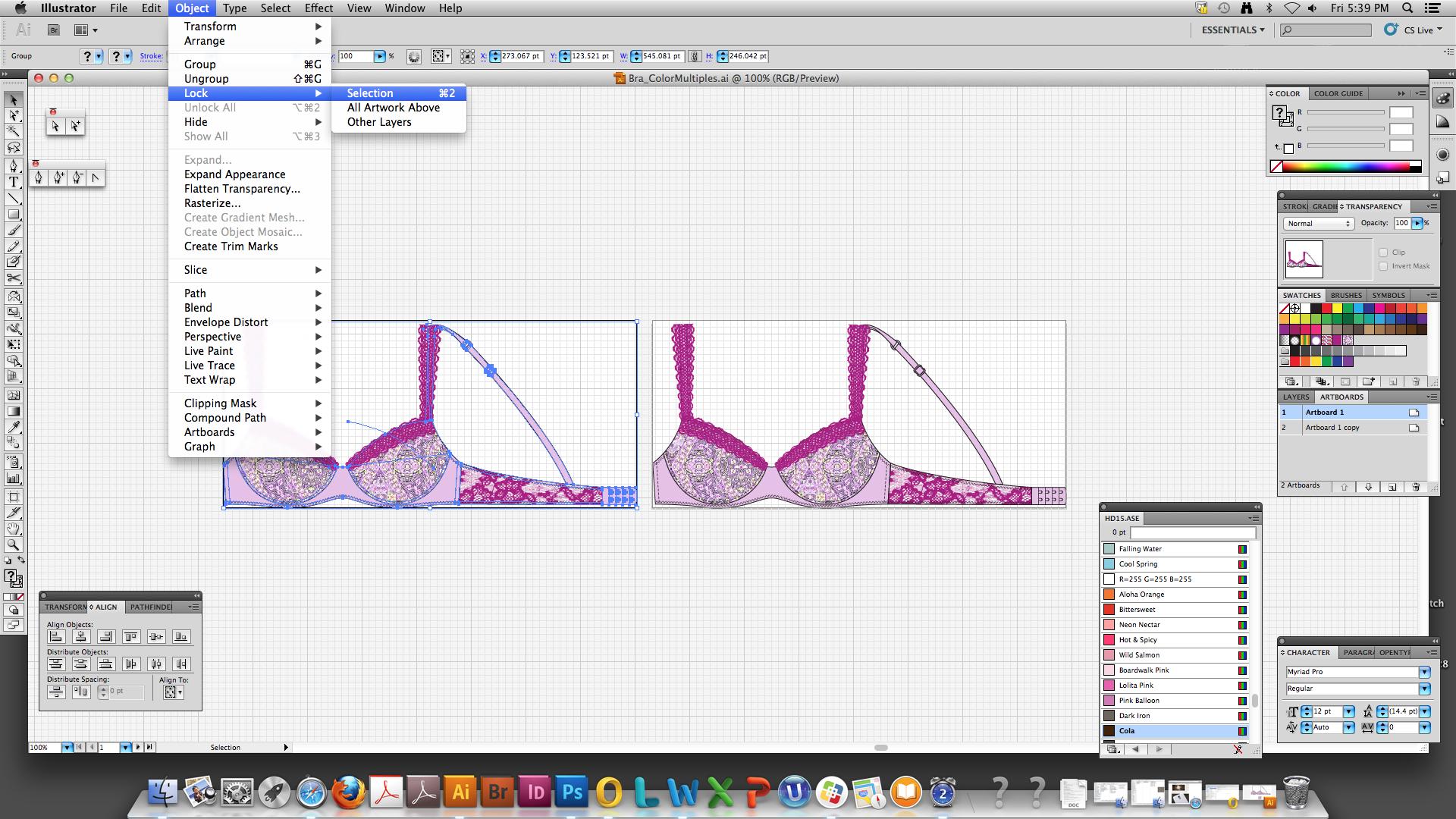 3. To preserve your original colorway, select the rst sketch and temporarily Lock it Object>Lock>Selection
