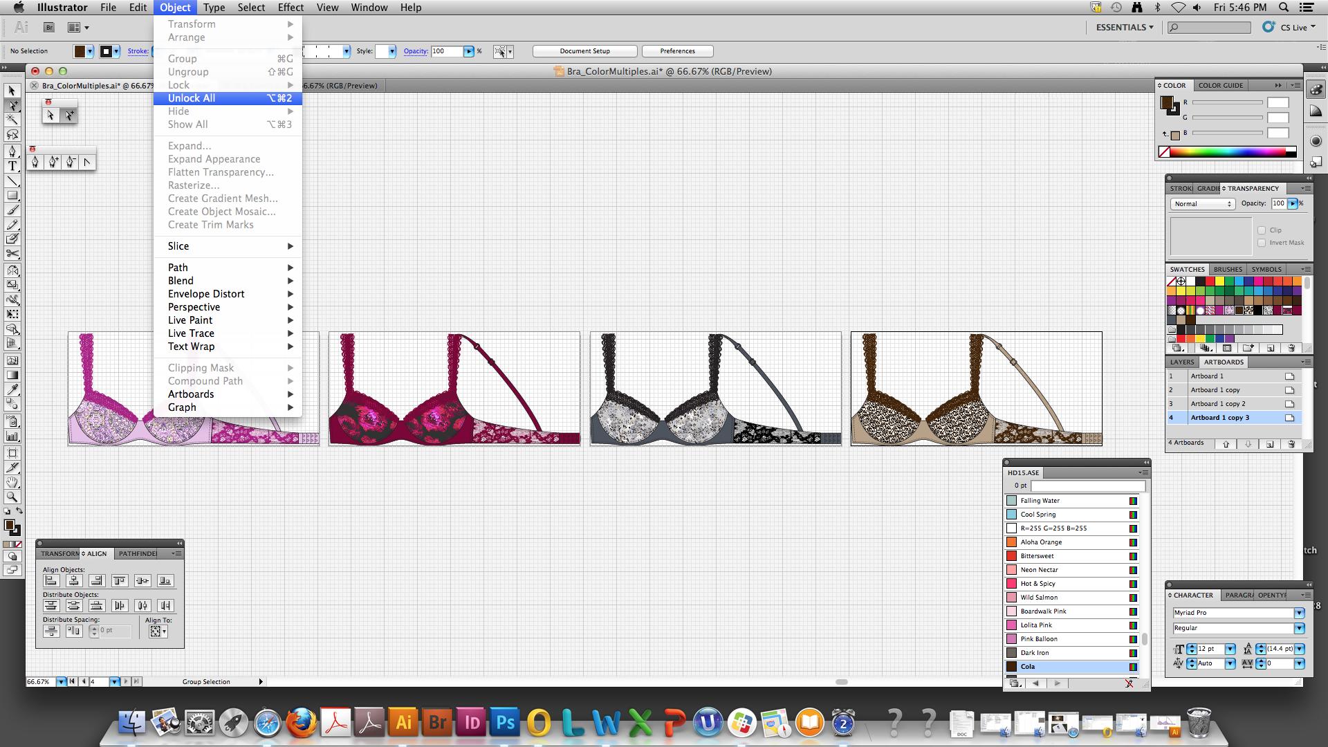 7. When all colorways are complete, Unlock the sketches to make any nal adjustments necessary Select>Unlock All