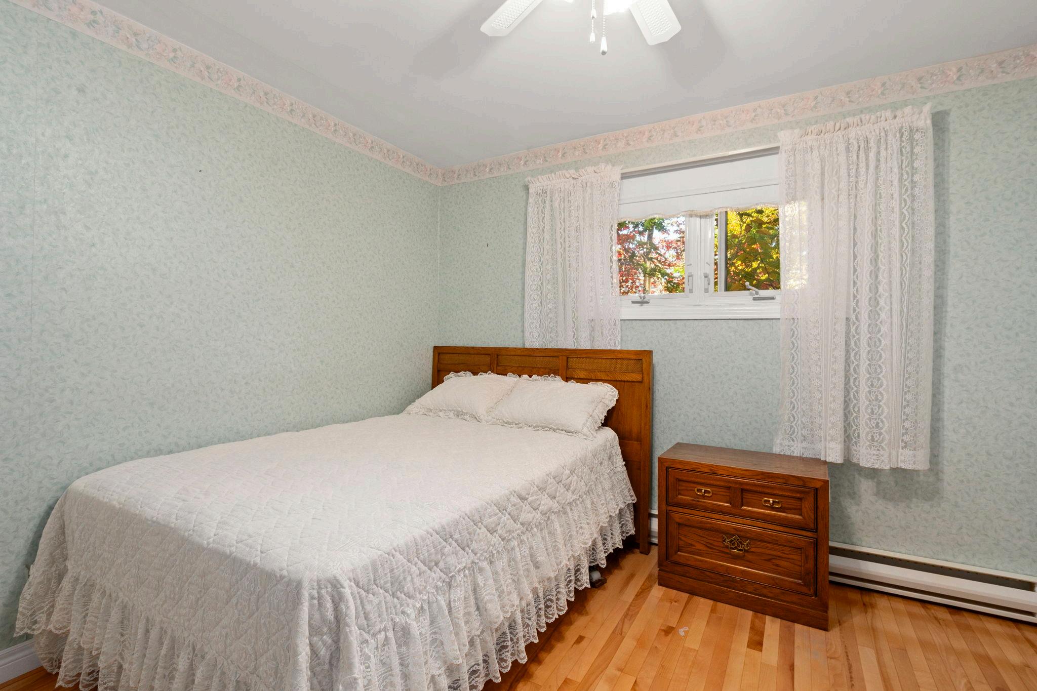 Each bedroom features warm wood flooring, creating an inviting atmosphere for restful nights. Soft natural light filters through the trees outside, offering privacy and calm The main hallway, widened to 37½ inches, adds accessibility and flow throughout the main level. Every detail, from flooring to lighting, has been chosen with care to create a home that feels both timeless and comfortable.