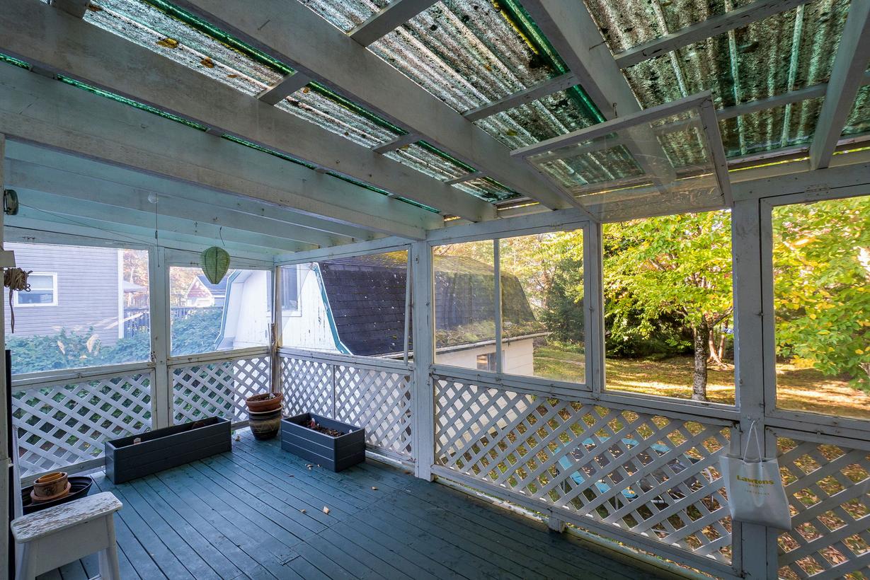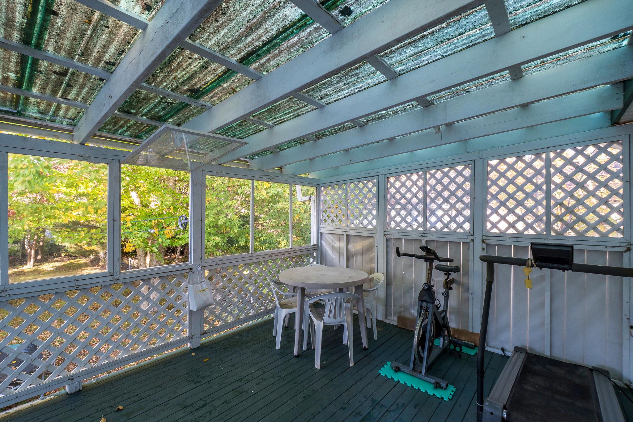 The spacious 20’ x 12’ back porch is a highlight a true extension of the home that can be enjoyed yearround Plexiglass wall panels can be opened wide in warm months to let in fresh air, or closed in cooler seasons to create a cozy retreat. Beneath the deck, a cleverly enclosed storage area with lattice and poly sheeting offers a tidy solution for bins, tools, or seasonal items, protected from weather and wildlife