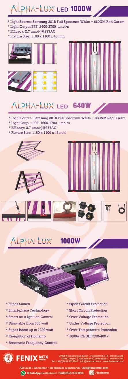 46 Advanced Hydroponics of Holland 2 Advanced Nutrients 1 Amsterdam Seed Center 23 Atami 7 Barney's Souvenirs 1 Canna Trade 5 Cervantes 34 Der Hollaender 42/43 Dr. Green 42/43 Dr. Underground 23 Dutch Trimming Company 25 Fenix 29 Florganics 23 Fourtwenty 1 Gizeh - Mascotte 9 Gras Grün 42/43 Green Pro Tech 11 Kanaba Fest 47 Kaya Foundation 33