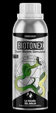 BIOTONEX ist ein kraftvoller zu 100% organischer Stimulator, der speziell für die Vorblütephase entwickelt wurde. Er basiert auf einer exklusiven Formel von Cannaboom SL, einem historischen spanischen Düngemittelunternehmen, das seine Produkte weltweit unter dem Markennamen „La poción del Brujo“ vertreibt. Es handelt sich um ein sehr stark konzentriertes Produkt (0,2 ml pro Liter Wasser), das bereits in der letzten Woche der Vegetativen Phase bis zur dritten/vierten Woche der Blühphase angewendet werden kann. Biotonex legt den Beginn der Blüte vor (um höchstens eine Woche) und regt die Bildung von Blütenknospen an, die sich bei kürzerem Internodienabstand in größerer Zahl entwickeln, wodurch die Pflanze kompakter und produktiver wird. Darüber hinaus trägt die spezielle Formel von Biotonex dazu bei, die für den Beginn der Blühphase typische Streckung der Pflanze zu stoppen, ihr Höhenwachstum zu verlangsamen und gleichzeitig die Anzahl der Seitenzweige zu erhöhen.