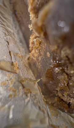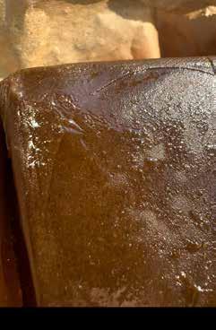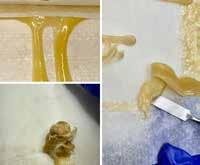 „Taffy Rosin“ wird hergestellt, indem frisches, warmes Rosin durchgeschlagen und gerührt wird, bis es eine dicke, karamellartige Konsistenz hat.