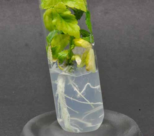 El uso del carbón activo en cultivo in vitro también genera ciertas dudas, ya que resulta contra-intuitivo que las raíces se puedan desarrollar en un gel prácticamente transparente y el carbón activo proporciona opacidad y oscuridad al medio. Realmente este no es el objetivo del carbón activo, ya que como se puede ver no es un condicionante la oscuridad del medio para la creación de raíces (Imagen 1). El carbón activo se emplea para la absorción de distintos compuestos en el