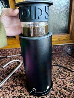 Filtrado de materiales. Tras apagarse el Led, dejar al ventilador que enfríe el recipiente de vidrio. Una vez enfriado, solo hay sacar el recipiente de vidrio y sustituir la tapa por un un filtro especial. Se invierte el bote, se aprieta el filtro y por un tubo colocado en su centro empieza a manar el aceite liquido. Incluye un sistema para recoger hasta las últimas gotas de aceite si andas justo de material· Cuando se va a consumir pronto, se puede guardar en la nevera, de lo contrario mejor conservarlo en el congelador.