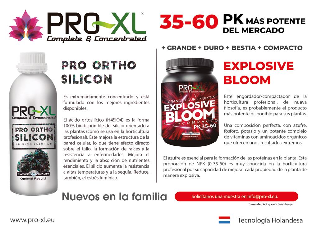 «Explode» es el producto estrella de la línea de nutrientes Dutch Pro y acaba de ganar el premio a mejor producto de cultivo de la Feria de Sevilla. Desarrollado para ser el potenciador definitivo, Explode mejora su proceso de cultivo al ofrecer una notable mejora en el rendimiento. Su fórmula avanzada, utiliza potasio y azufre para mejorar el transporte de nutrientes, aumentar la producción de azúcares, promover la síntesis de clorofila para una fotosíntesis óptima y fortalecer las plantas contra una variedad de enfermedades fúngicas y bacterianas. De esta forma mejora el sabor y el peso de los cultivos. Una característica destacada de Explode es su fórmula todo en uno, que elimina la necesidad de suplementos adicionales de PK 13/14. Al integrar Explode en su rutina de cuidado de plantas, simplifica su enfoque y logra resultados superiores sin la necesidad de varios productos. Explode está cuidadosamente elaborado para excluir metales pesados, residuos o PGR, preservando la pureza y la salud del entorno de crecimiento de las plantas. Diseñado para facilitar su uso, Explode simplifica su rutina de cultivo con su proceso de aplicación sencillo. Sin embargo, su efecto profundo va más allá de la simplicidad, generando un cambio transformador que empodera a las plantas para prosperar y florecer.