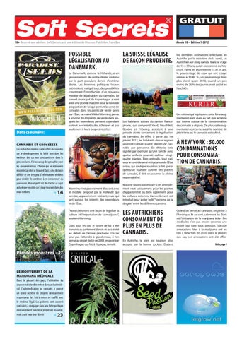 Les habitants suisses du canton francophone, qui comprend Vaud, Neuchâtel, Genève et Fribourg, assistent à une période dorée concernant la légalisation du cannabis. En effet, à partir du 1er janvier 2012, les habitants de ces régions pourront cultiver quatre plantes de cannabis par personne. En théorie, cela signifie par exemple qu'une famille avec quatre enfants pourrait cultiver vingtquatre plantes. Bien entendu, tout ceci sous le contrôle serré et rigoureux de l'État suisse, qui souligne toutefois le fait que si quelqu'un souhaite cultiver des plantes de cannabis, il doit en assumer la pleine responsabilité.