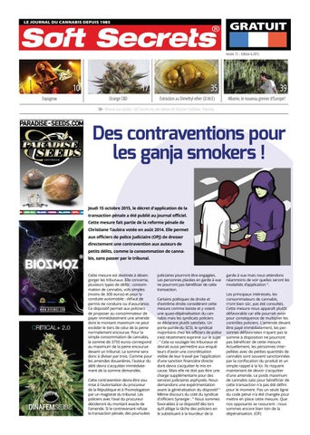 garde à vue mais nous attendons néanmoins de voir quelles seront les modalités d’application ". Les principaux intéressés, les consommateurs de cannabis, n'ont bien sûr, pas été consultés. Cette mesure nous apparaît plutôt défavorable car elle pourrait avoir pour conséquence de multiplier les contrôles policiers. L'amende devant être payé immédiatement, les personnes défavorisées n'ayant pas la somme à disposition ne pourront pas bénéficier de cette mesure. Actuellement, les personnes interpellées avec de petites quantités de cannabis sont souvent sanctionnées par la confiscation du produit et un simple rappel à la loi. Ils risquent maintenant de devoir s'acquitter d'une amende. Le poids maximum de cannabis saisi pour bénéficier de cette transaction n'a pas été défini pour le moment. Pas un seule ligne du code pénal n'a été changée pour mettre en place cette mesure. Que nos opposants se rassurent : nous sommes encore bien loin de la dépénalisation. (OF)