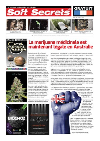 La marijuana médicinale est maintenant légale en Australie Le mois dernier, le parlement australien a voté de nouvelles lois nationales qui ouvrent la voie à l'usage médicinal du cannabis pour les personnes souffrant de douleurs et de maladies chroniques. RRY SENSI-STAR DELAHAZE PANDORA BELLADONNA WAPPA ALL