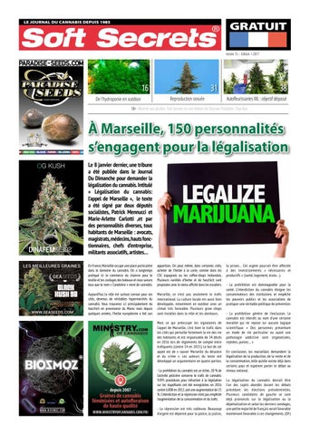 la prison… Cet argent pourrait être affectée à des investissements « nécessaires et productifs » (santé, logement, école…). - La prohibition est dommageable pour la santé. L’interdiction du cannabis éloigne les consommateurs des institutions et empêche les pouvoirs publics et les associations de pratiquer une véritable politique de prévention. - La prohibition génère de l’exclusion. Le cannabis est interdit au nom d’une certaine moralité qui ne repose sur aucune logique scientifique. « Des personnes présentant un mode de vie particulier ou ayant une pathologie addictive sont stigmatisées, rejetées, punies… » En conclusion, les marseillais demandent la légalisation de la production, de la vente et de la consommation, telle qu’elle existe déjà dans certains pays et espèrent porter le débat au niveau national. La légalisation du cannabis devrait être l’un des sujets abordés durant les débats précédant les élections présidentielles. Plusieurs candidants de gauche se sont dejà prononcés sur la légalisation ou la dépénalisation et selon les derniers sondages, une petite majorité de français serait favorable maintenant favorable à ces changements. (OF)