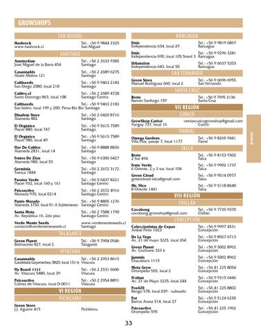 Casannabis Tel.: +56 2 2953 8615 Candelaria Goyenechea 3820, local 151-b Vitacura Fly Board 1111 Av. Vitacura 5480, local 39