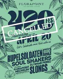 Het 420 Fest in Mechelen op 20 april, waarover we in het vorige nummer schreven, moest helaas worden geannuleerd. Organisator Florapoint: ‘Niet de gemeente of de politie maken het ons moeilijk, wel het FAVV (Federaal Agentschap voor de Veiligheid van de Voedselketen). Ons evenement zou mensen “aanzetten tot roken”, en dat mag niet. Het is jammer dat zelfs een privéevenement gebonden is aan dit soort regelgeving. We kunnen ook ons ook niet van de indruk ontdoen dat het thema cannabis in sommige kringen nog altijd heel gevoelig ligt, in wat voor vorm of context dan ook.’ Alle tickets voor het 420 Fest werden terugbetaald, met een gratis rolling tray van Rupelsoldaten er bovenop. En de organisatie belooft: ‘Een uitstel is geen afstel. Volgend jaar zijn we er weer, in full canna force.’
