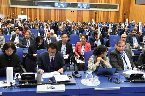 de plenaire zaal, op de eerste rij de gedelegeerde van China