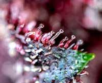 Il 42° giorno do una lieve strizzata alle grasse cime a forma di mazza da baseball e le annuso. L’aroma può essere descritto come terroso, pungente, speziato con un tocco fruttato e floreale. I nutrienti vengono somministrati alla pianta in proporzione di 5 ml per litro di