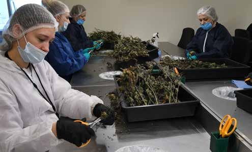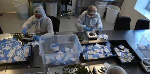 Era tutto perfettamente pulito e le piante potevano essere spostate da una stanza all’altra utilizzando un pratico sistema a ruote. L’ultima stanza che abbiamo visitato era piena di piante pronte per essere raccolte; l’odore era travolgente. Nell’area di potatura, decine di dipendenti erano all’opera. Anche la pesatura e il confezionamento venivano effettuati a mano. HH utilizza anche macchine per la potatura, ma durante il tour non le abbiamo viste in funzione.
