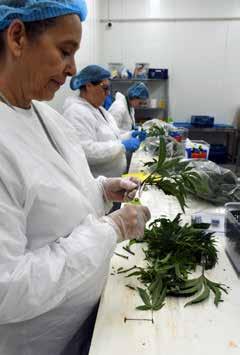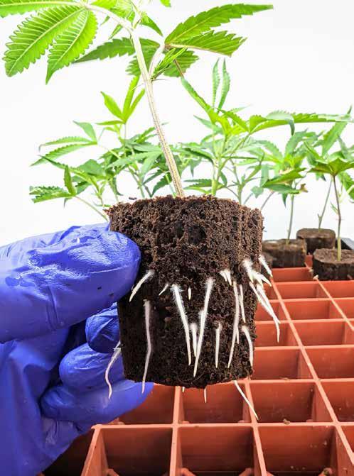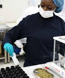 Przepisy to tylko jedno z wyzwań, przed którymi stoi firma Q-Farms. Największym z nich jest finansowanie, twierdzi Van Os. Jednak firma boryka się również z problemem znanym w branży tj. utajonym wiroidem chmielu, który jest niezwykle szkodliwy dla upraw konopi. Od tego czasu protokoły higieniczne stały się jeszcze bardziej rygorystyczne. Zanim pozwolono mi wejść do pomieszczenia, w którym odbywa się uprawa, musiałem rozebrać się do bielizny i skarpetek. Otrzymuję czystą białą odzież, a na nią zwykły jednorazowy kombinezon, ochraniacze na buty, siateczkę na włosy i gumowe rękawiczki. Tuż przed wejściem do pomieszczenia z młodymi roślinami muszę zmienić tę drugą warstwę.