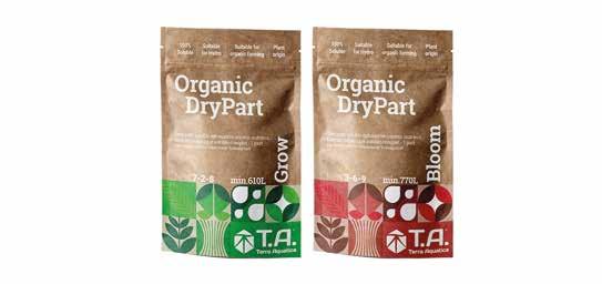 Organic DryPart® jest w 100% rozpuszczalny i wegański, łącząc w sobie wydajność, prostotę i wszechstronność. Jest przeznaczony do upraw w glebie, włóknie kokosowym oraz upraw hydroponicznych i może być stosowany we wszystkich systemach nawadniających bez ryzyka zatkania lub pozostawiania osadów.