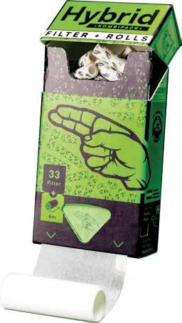 Wprowadzony po raz pierwszy na rynek jesienią 2022 roku, Hybrid Kombipack jest odpowiedzialny za wiele momentów „Awww”, a nawet zdobył nagrodę German Packaging Award w 2023 roku. Unikalna kombinacja 33 sztuk rewolucyjnych filtrów hybrydowych z węglem aktywnym oraz 4-metrowych super cienkich, niekończących się bibułek to praktyczne połączenie zamknięte w wytrzymałym kartonie i idealne do podróży lub jeśli po prostu lubisz mieć porządek w domu.