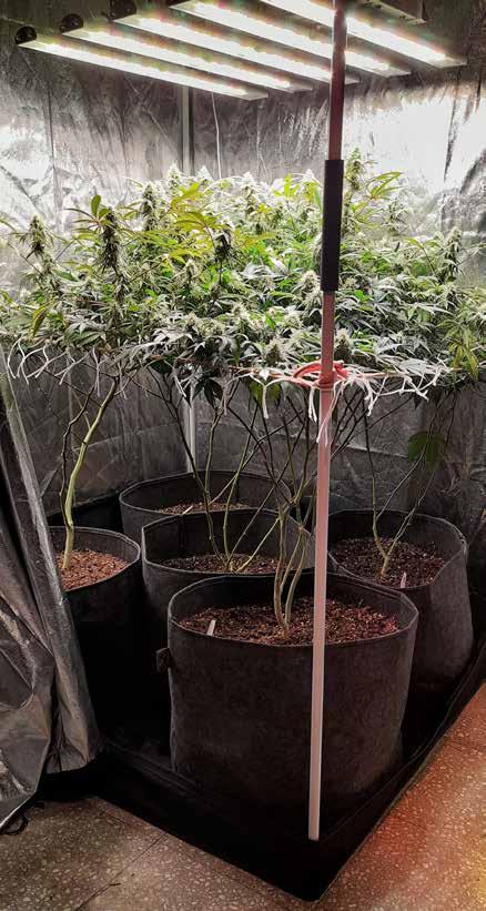 la producción de un 10% a un 20%. Por el contrario, la técnica LST consiste en doblar ramas atándolas para causarle un mínimo estrés a la planta. De esta forma se controla el crecimiento de la altura de la planta y se promueve el desarrollo horizontal.
