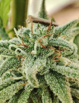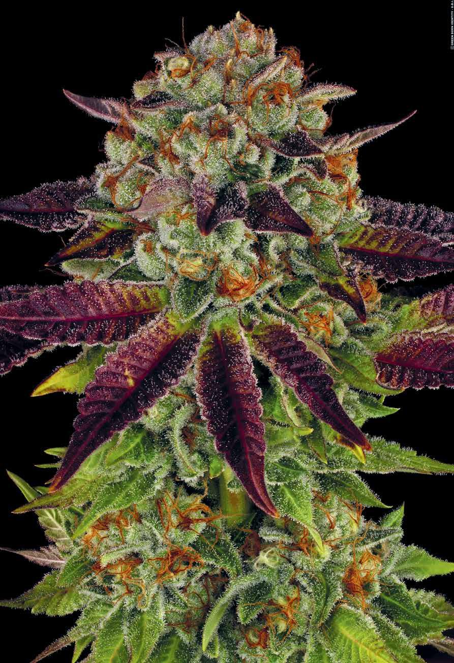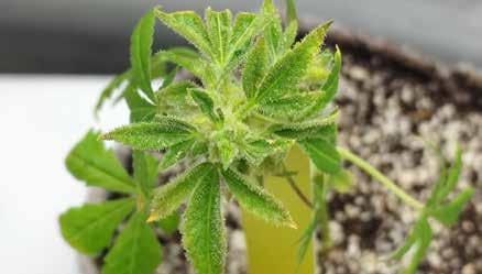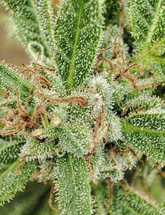 Durante las tres primeras semanas de floración en las puntas eclosionaban jóvenes brotes llenos de numerosos pistilos blancos. Con ocho semanas de floración las hojas grandes estaban completamente cubiertas de relucien tes capas de aromática resina.