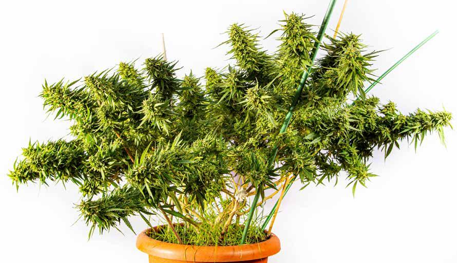 Una vez determinado el crecimiento de la planta, podremos trabajarla según se adapte al espacio que tenemos acondi cionado. Si tenemos una planta espiga da o en forma de pino, lo más común es hacer una poda apical para controlar su altura, así no llamarán la atención de vecinos, ni de miradas indiscretas. Las cañas de bambú ayudarán a soportar el peso de las ramas.