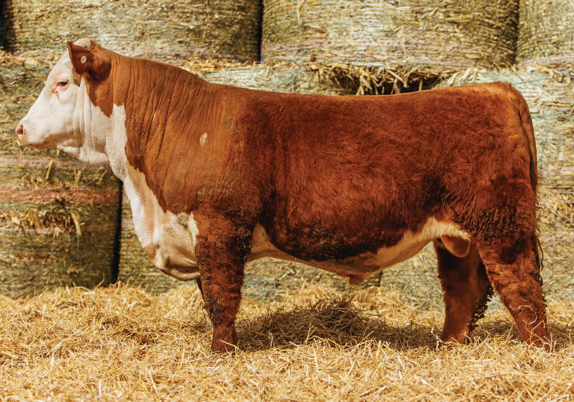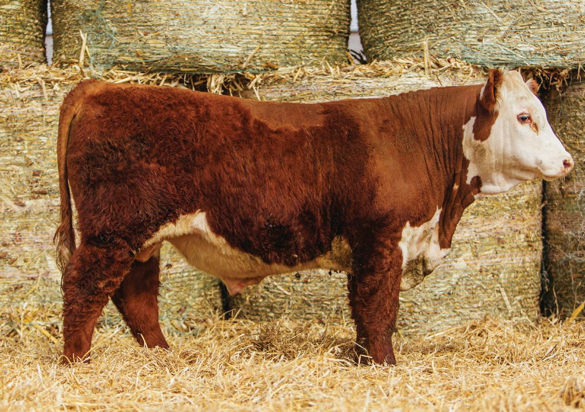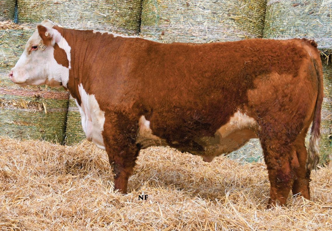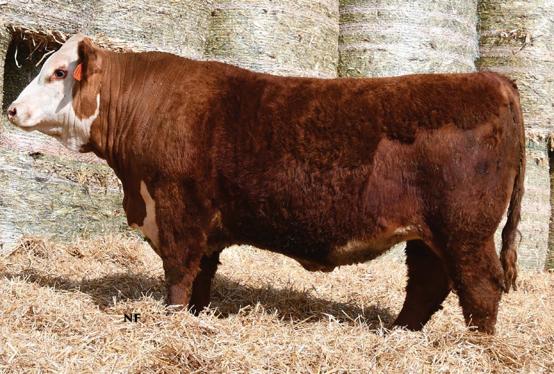 Homozygous polled. Love the depth of body, power and look that this guy carries. A Relevant son that’s sure to catch your eye.