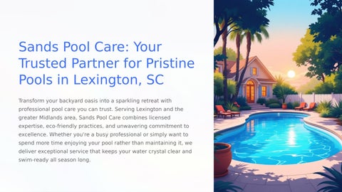 Sands Pool Care is a trusted provider of professional pool maintenance, cleaning, and repair services, dedicated to keeping pools clean, safe, and fully functional year-round. With a focus on quality workmanship and customer satisfaction, Sands Pool Care offers routine pool servicing, equipment inspections, pool pump repair, water balancing, and troubleshooting for residential and commercial pools.