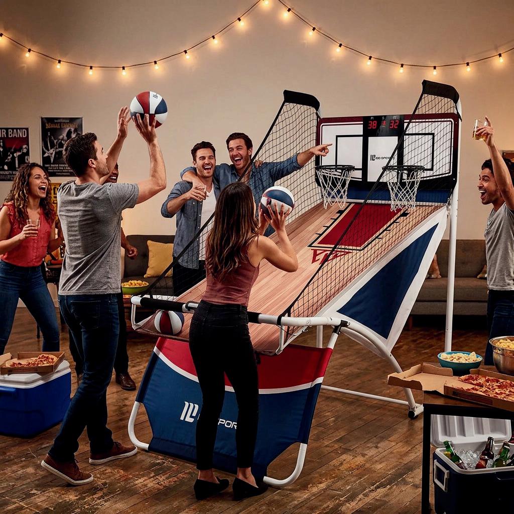 TABLERO DE BASKETBALL ARCADE CON CONTADOR ELÉCTRONICO Y 4 BALONES, DIFERENTES MODOS DE JUEGO PARA PARTIDAS EMOCIONANTES Y COMPETITIVAS