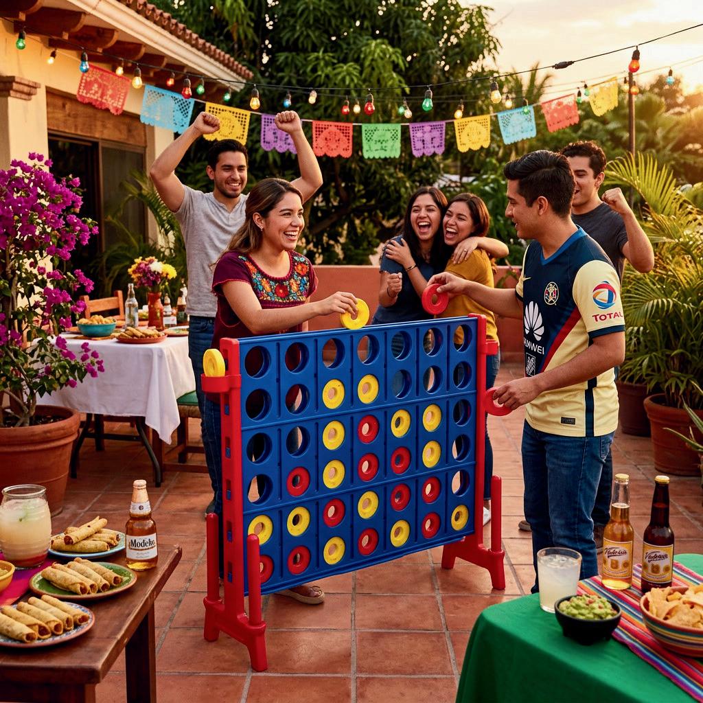TABLERO GIGANTE DE CONNECT 4, INCLUYE 42 AROS DE COLORES Y 2 PORTAVASOS.
