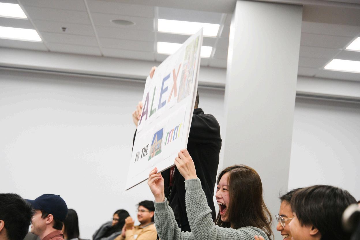 Lab mates in the audience cheering on their postdoc in the the Mesa-wide final round competition