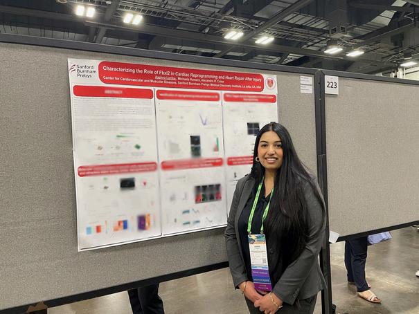 Each conference also represented an opportunity to celebrate the achievements of current trainees. Aashna Lamba (pictured left), a CIRM Fellow and graduate student in the lab of Dr. Alexandre Colas, received a travel award to present her research at the SACNAS NDiSTEM Conference and serve as a mentor judge for undergraduate poster presentations.