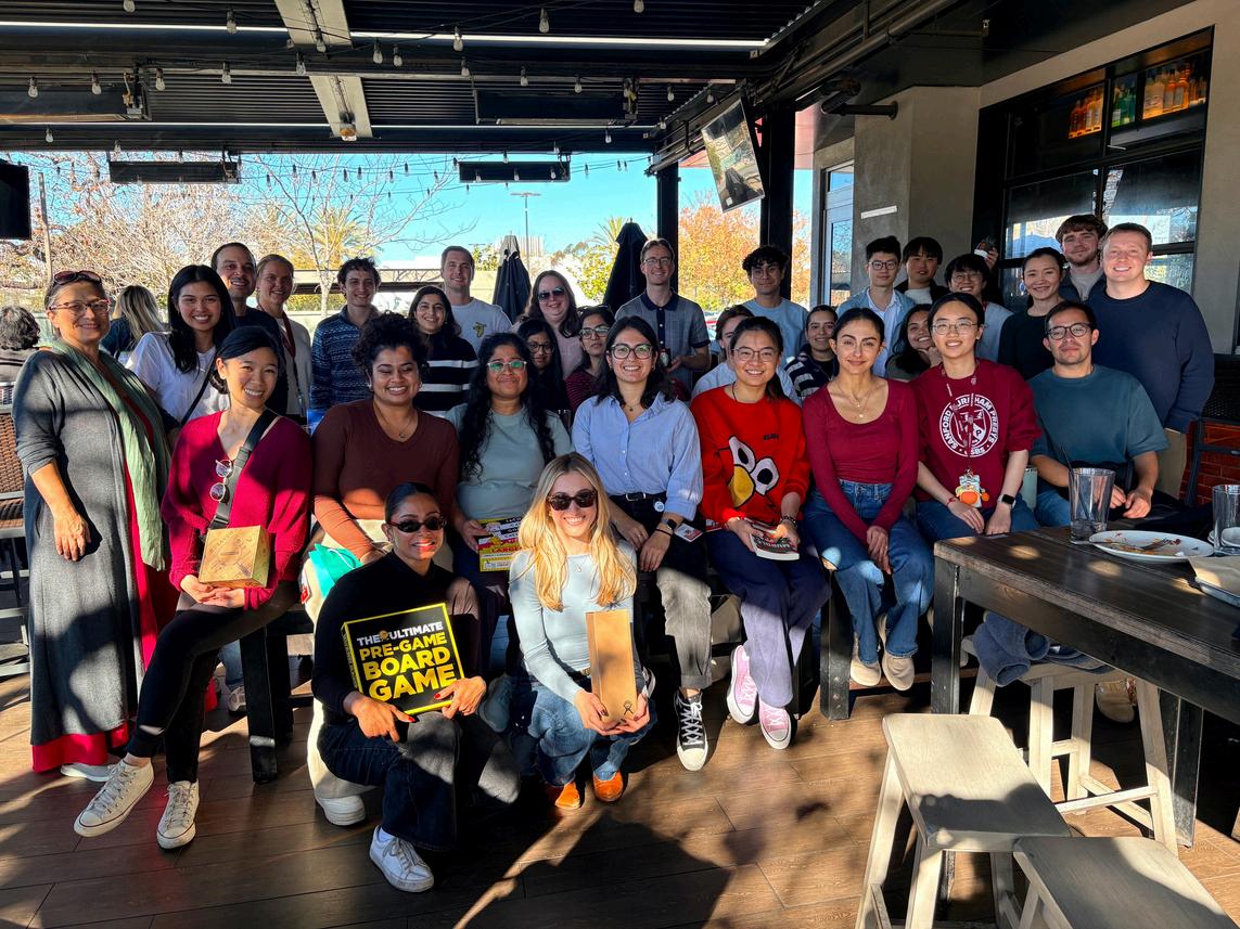 In December, the Graduate School of Biomedical Sciences (GSBS) celebrated the holiday season with its Annual Holiday Luncheon, held at BJ’s Restaurant & Brewhouse in La Jolla. The event was attended by graduate students, administrators, and Deans. Attendees enjoyed a lunch buffet followed by a lively white elephant gift exchange among the students