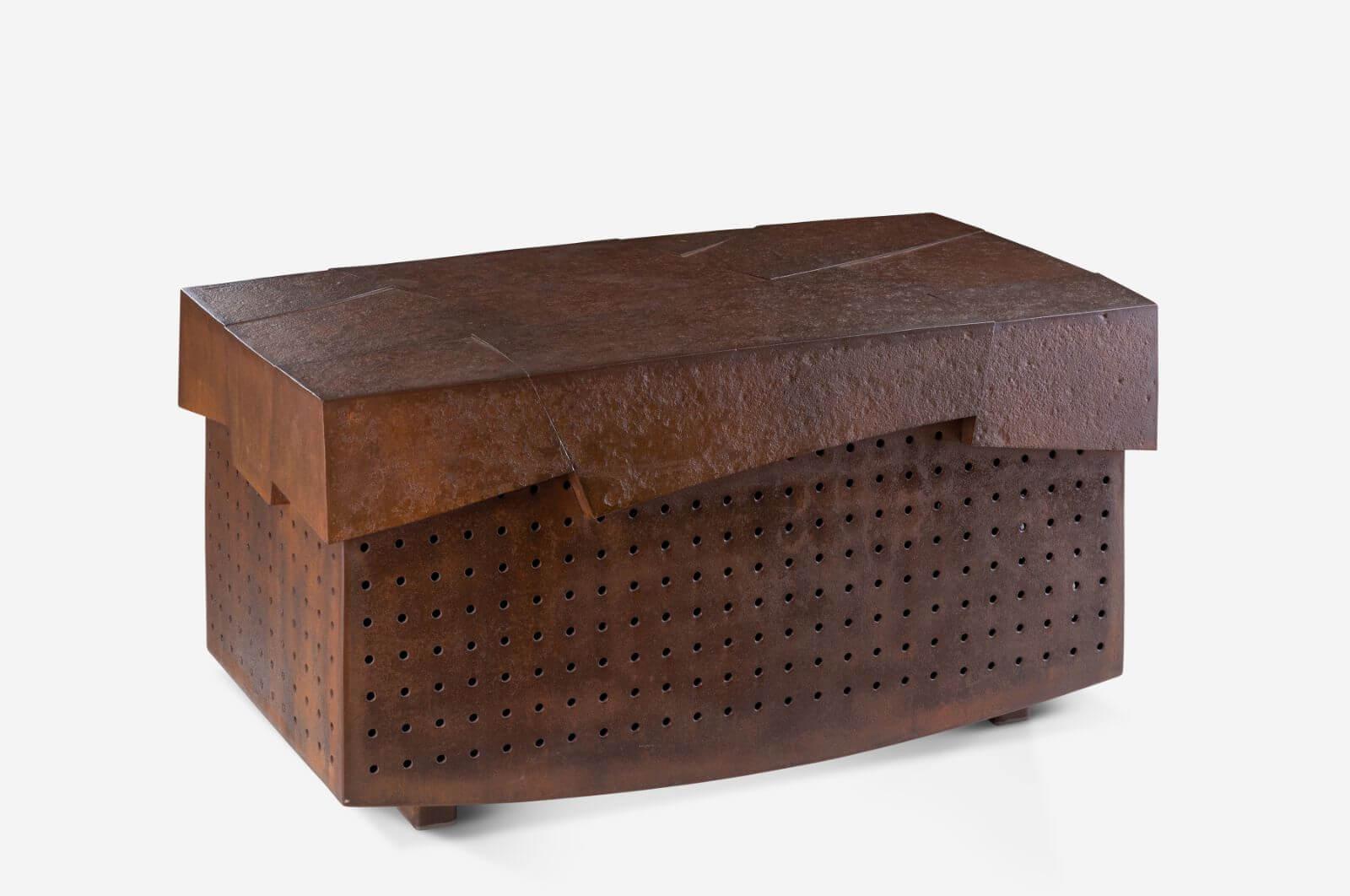 ChicagogalleryConversoexhibitedpiecesfromBruceGoff,GeorgeNakashimaandNormanTeague.Teague’sZigZagBookshelfispart ofhis“bureauofreconstruction“.Courtesyofthegallery.