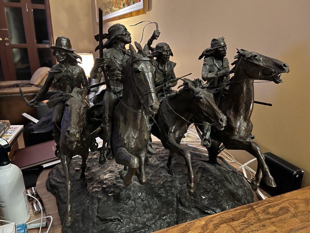 Harry Jackson’s Marshall bronze sculpture of John Wayne as Rooster Cogburn from the movie True Grit.