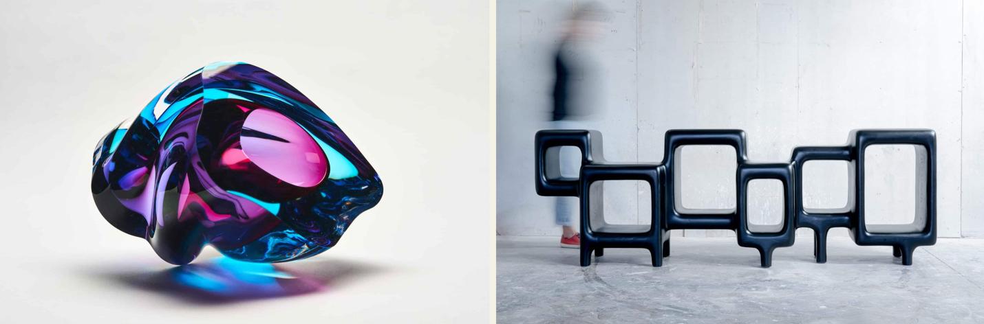 Another impressive work by first-time exhibitors at the event included a series of totemic illuminated handblown glass sculptures by the New Delhi-based Klove Studio with imagery that looks akin to a Hopi or an Indian carpet with Menorahs, horns and Aztec headdresses. Through their work, the designers intend to harness sacred symbols and imagery from the past in a modern aesthetic, as they explained briefly in a discussion with ArchiExpo e-Magazine.