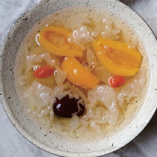 4、白木耳釋出膠質後放入冰糖、枇杷、枸杞燉煮 7-8分鐘,就完成了。(新鮮的白木耳大約 燉煮30-40分鐘就會釋放膠質。)