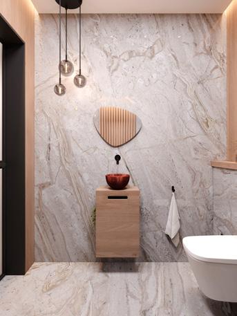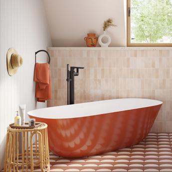 De Bright & Bold-trend draait om het toevoegen van levendige tinten zoals terracotta en diepgroen. Deze trend speelt met rijke, gedurfde kleuren die je badkamer energie geven, zonder te schreeuwen.