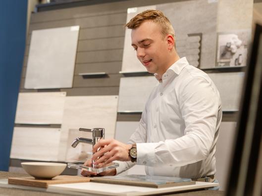 "Klanten verbazen zich er regelmatig over dat het samenstellen van een badkamer helemaal niet zo eenvoudig is. Het is een groot project, waarbij veel komt kijken, zoals het ontwerp, de keuze van producten en materialen, eventuele verbouwingen, leidingwerk, tegelwerk en natuurlijk goede service en garantie achteraf.