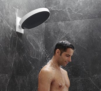 De XXL hoofddouche met de PowderRain straal omhult je volledig met duizenden fijne druppels, alsof je in een zachte cocon van warm water staat.
